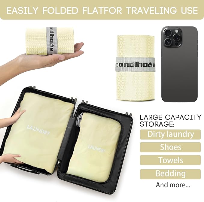 - Perfect Travel Size: Two different sizes suitable for more scenes. The large size is 23.6*17.7 inches, and the medium size is 21.7*13.8 inches. The folded size is very small, taking up the smallest possible space in the suitcase while providing greater capacity, especially suitable for travel, camping, fitness, and students.