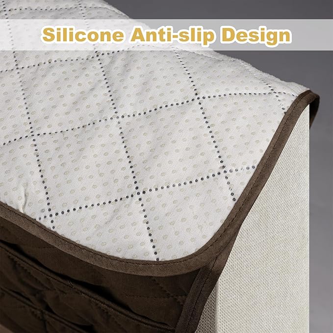 Remote Control Holder for Recliner,Armchair Caddy,Non Slip Sofa Armrest Storage Organizer for Recliner Couch with 6 Pockets for TV Remote,Cell Phone,Magazine (Brown)
