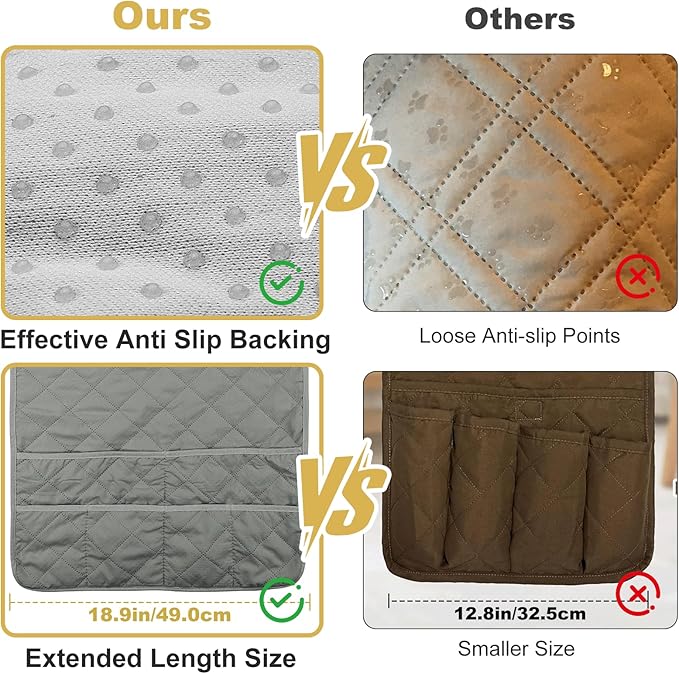 - 【Easy Care & Install】: This tv remote caddy is easy to care for—just machine wash it directly. It’s simple to install: slip one end of the recliner organizer under the sofa seat,then cover the sofa armrest. If it’s too long,roll up that end accordingly and tuck it under the seat.