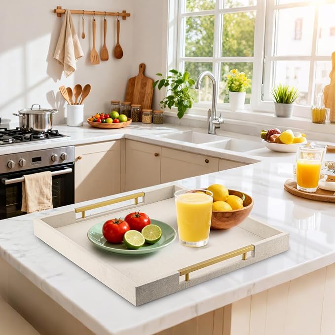 - Serving Tray with Handles:Equipped with sturdy Gold handles, this serving tray provides a comfortable and secure grip, making it easy to transport and serve food and drinks.