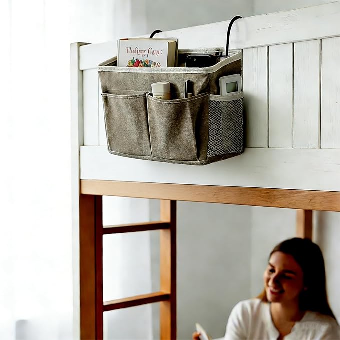 - Versatile Design: Perfect for dorm beds, hospital beds, bunk beds, or bedroom doors. Organize magazines, phones, notebooks, pens, and drinks effortlessly