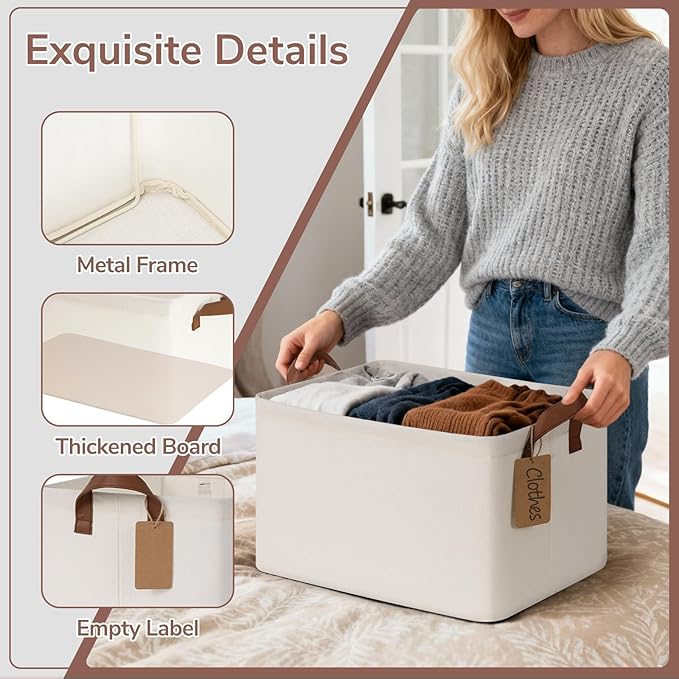 - Enhanced Stability & Strong Support: Built with sturdy base plates and a durable metal frame, these storage bins maintain their shape and structure even when empty. The reinforced design ensures lasting durability and reliable support for everyday storage