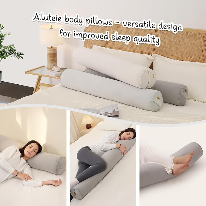 - Long Body Pillow for Adults – Available in59"x7.87"、 47.24"x 7.87"and 39.37"x 7.87"to fit your needs. Full-body support for side sleepers, reducing pressure on spine and joints.