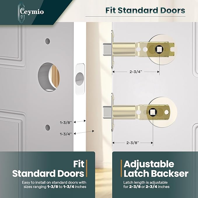 - 【Universal Door Latch】:Adjustable backset (2 3/8" or 2 3/4") and fits standard door thickness (1 3/8" to 1 3/4"). No need to measure - perfect for replacement or new installations!
