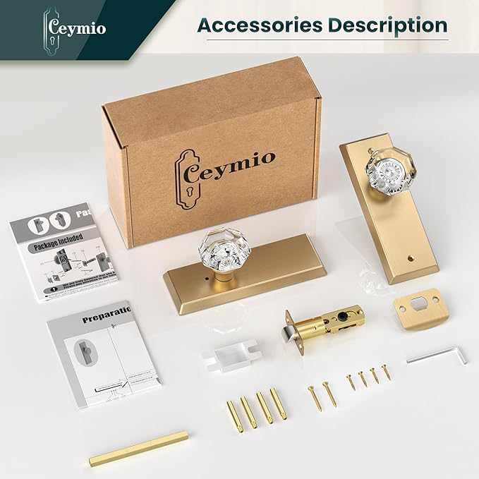 - 【High End Glass & Brass Door Handle】:Smooth operation with secure locking. Heavy duty and durable, perfect for modern, vintage,antique or transitional interiors