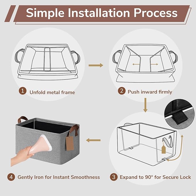 - Enhanced Stability & Strong Support: Built with sturdy base plates and a durable metal frame, these storage bins maintain their shape and structure even when empty. The reinforced design ensures lasting durability and reliable support for everyday storage