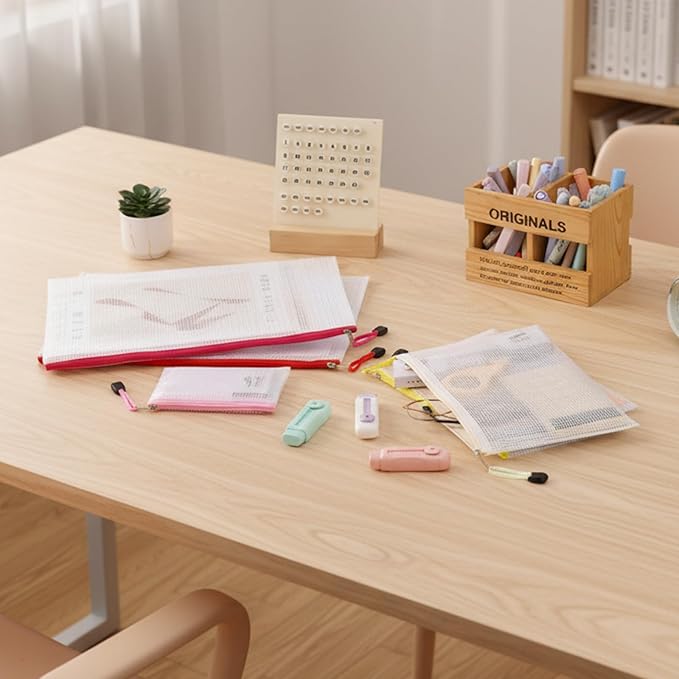 - Translucent Design: Due to the moderate transparency of the translucent mesh, these mesh zipper pouches can help you quickly identify and find what you need, which is desirable for organizing and protecting school and office supplies.