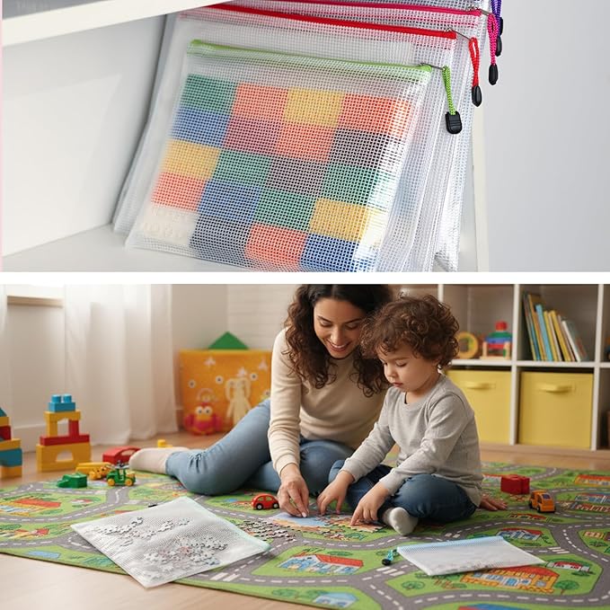- Different Purposes: Multi-size mesh zipper storage pouches can be used for documents, toiletries, bills, receipts, photos, school supplies and etc. Some sizes can be used to store travel items such as toothbrushes, cosmetics and jewelries. Some can be used to store toys and DIY gadgetry.