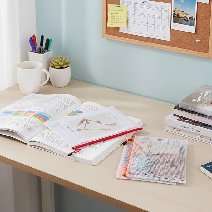 - Translucent Design: Due to the moderate transparency of the translucent mesh, these mesh zipper pouches can help you quickly identify and find what you need, which is desirable for organizing and protecting school and office supplies.