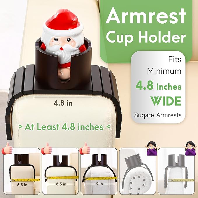 - đăFits Square & Soft Shape Couch Armrestsă: The couch arm rest cup holder is designed specifically for flat, square arms and large, soft upholstered arms measuring wider than 4.8 inches.Please note: the sofa cup holder is not compatible withany sofa armrests measuring less than 4.5 inches. (Like as irregular,curved ,arched armrests or small-sized hard armrests)â PLEASE MEASURE BEFORE YOU BUY!