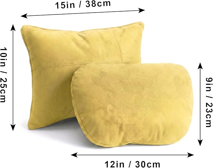 WELBRIT 2PCS Car Pillow for Car Neck Pillow for Driving Seat Lumbar Support Soft Cushion with Extra Filling Accessories Back Support for Travel Nap and Trips Sleeping (Golden, Head and Lumbar)
