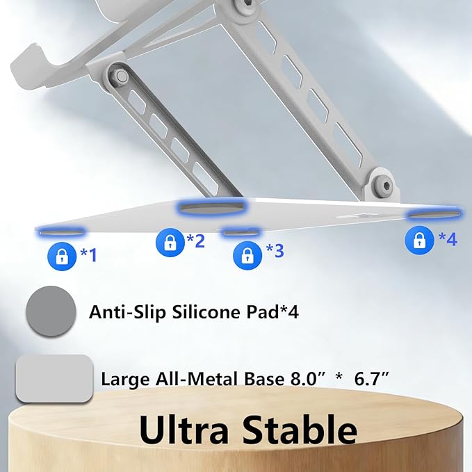 - [Ultra Stable Metal Base]: All Metal Base with size 20.3cm*17cm(8”*6.7”) provides superior stability, ensuring your computer won't accidentally fall off the stand.