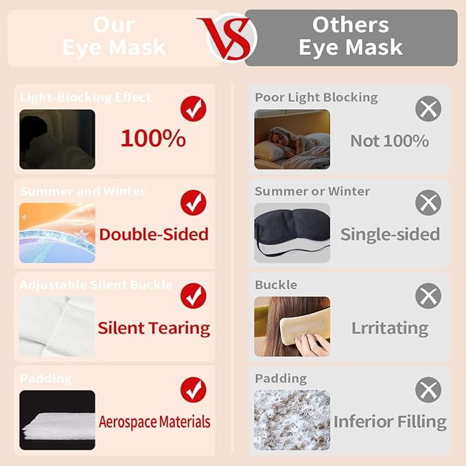 - Year-round Comfort: Dual-side all-season design. One side is soft, breathable cotton for cozy warmth; the other is cooling, silky-smooth satin for a refreshing feel. Advanced aeronautical-grade filling naturally regulates temperature, so your eyes stay at the perfect comfort zone whether you're in a stuffy plane or a warm bedroom .