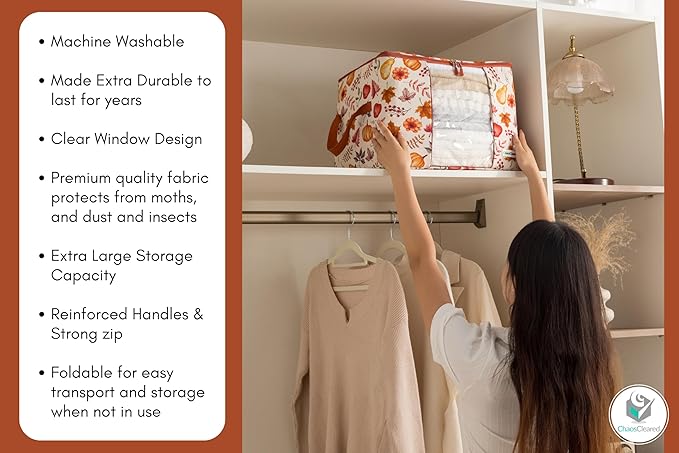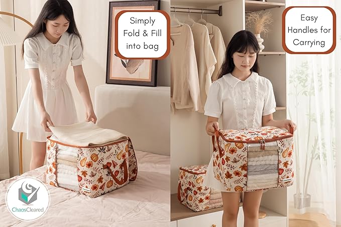 - ✅DESIGNER SPACE SAVER - Save precious closet space by stowing away seasonal clothing or home goods in our beautiful autumn print that looks attractive while doing the job.