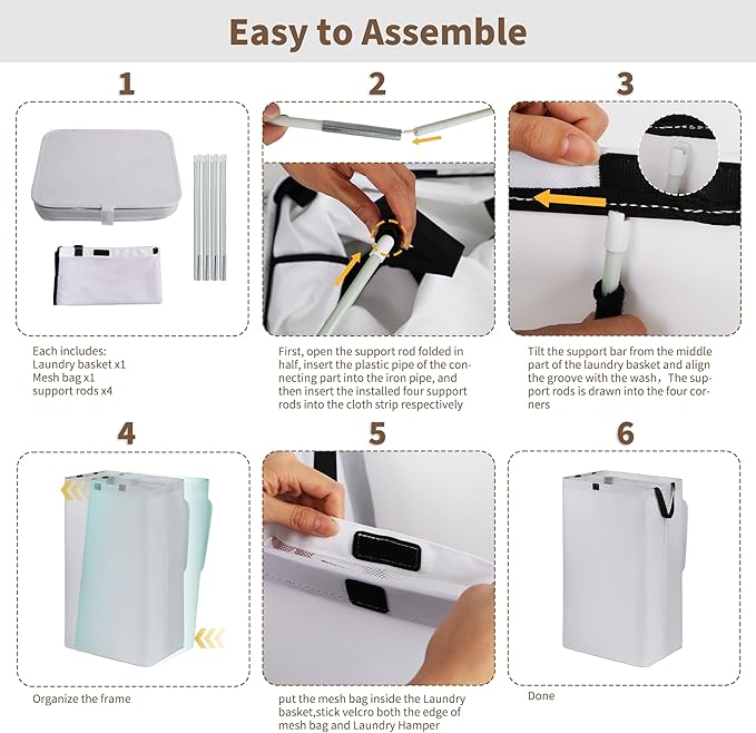 - 【Easy to Install and Foldable】just insert 4 support rods into the fixed tube, you can complete the collapsible laundry basket installation in 1 minute, which is simple and convenient. It can be used as a dirty clothes hamper, but also can be used to store toys, clothes, blankets, and other sundries. It can be easily folded when not in use which is space saving, also suitable for camping and RV trips.