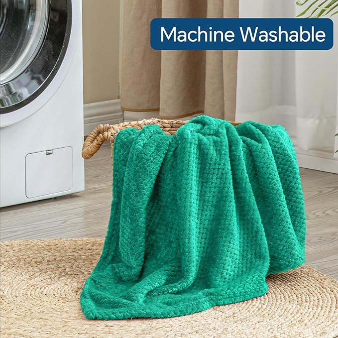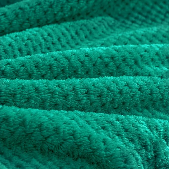 BEDELITE Travel Blanket with Bag, Ultra-Soft Jacquard Fleece Blanket with Luggage Sleeve & Backpack Clip, Airplane Blanket Travel Essentials, Teal
