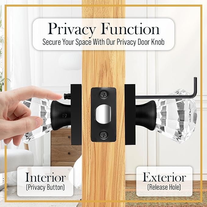 - ๐๐ซ๐ข๐ฏ๐๐๐ฒ ๐๐จ๐๐ค๐ฌ โ Enjoy keyless privacy with our crystal door knobs interior with or without lock, perfect for bathrooms and bedrooms. These antique door knobs interior feature a privacy lock and emergency releaseโsimply use the included Allen key to unlock. Ideal for anyone searching for glass doorknobs for interior doors, vintage door knob with lock functionality, or vintage door knobs with a modern-meets-classic aesthetic.