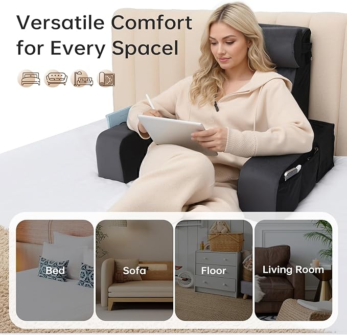 - Portable, Easy-Care Design for Multiple Scenarios: Lightweight and easy to carry with its built-in handle. The removable cover is machine-washable for simple cleaning. Ideal for reading, watching TV, gaming, working, relaxing in bed, on the couch, or on the floor—also great for post-surgery recovery, dorm study sessions, improved posture