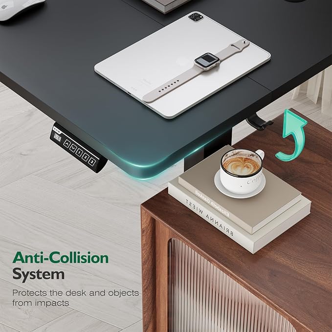 - 【Advanced Safety with Anti-Collision Protection】Move and adjust with confidence. The built-in intelligent anti-collision system automatically stops and reverses direction if an obstacle is detected during descent, safeguarding your equipment, pets, and children while preventing desk damage.