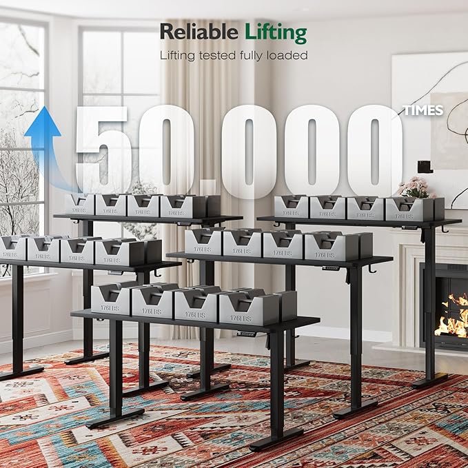 - 【Quiet, Durable Motor & Robust Construction】Engineered with a high-performance dual-motor lift system and a reinforced steel frame, this desk operates quietly under 50 dB while supporting up to 176 lbs. Tested over thousands of cycles, it delivers smooth, stable, and reliable height adjustment year after year.