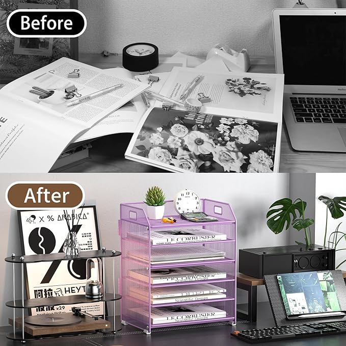 - Space-Saving Solution: Compact design fits perfectly on any desk, saving space while keeping documents tidy; great as a desktop file organizer or desk top file organizer stand.