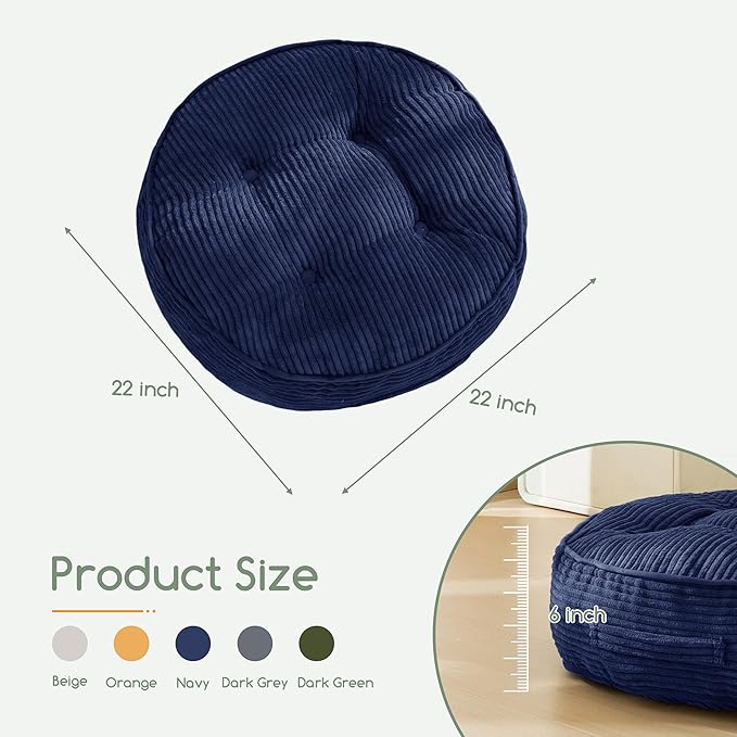6" Washable Floor Pillow Cushion for Adults, Meditation Cushion Pillow, Large Round Floor Sitting, Removable Tufted Corduroy Cover, for Tatami Living Room or Yoga, 22x22 Inch, 2Pack, Machine Washable