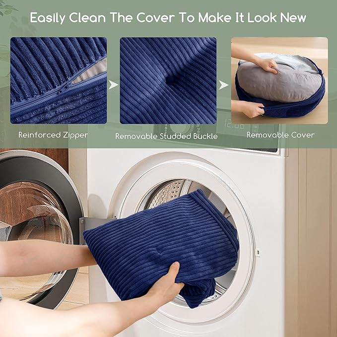 - 【MACHINE WASHABLE DESIGN AND METICULOUSLY CRAFTED】 Soft corduroy fabric provides luxurious texture. Removable cover allows machine washing, then quick reattachment for refreshed appearance. A handle is designed for you to conveniently carry the sitting cushions wherever you go. Reinforced with tufted buttons and piping stitching to resist deformation while elevating visual appeal.