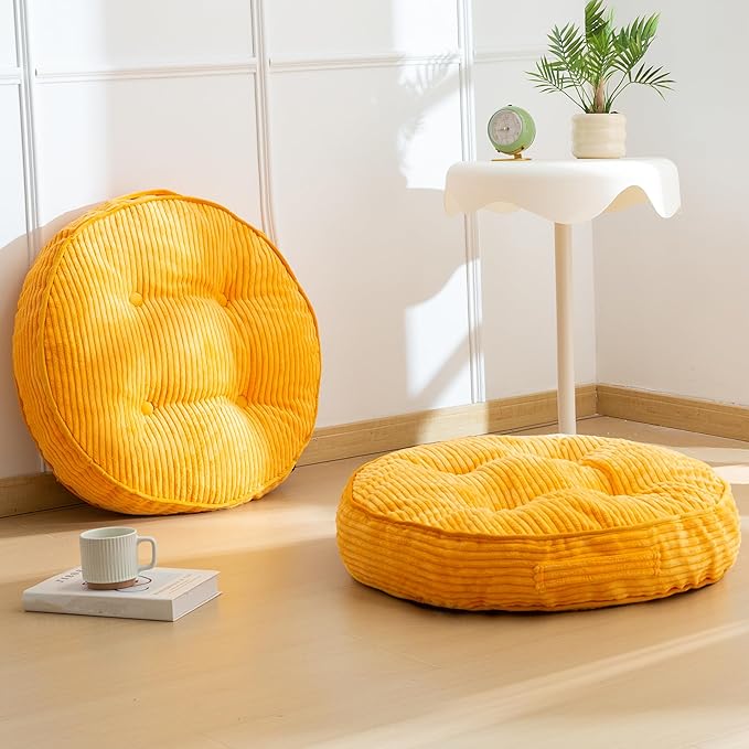 Washable Floor Pillow Cushion for Adults, Meditation Cushion Pillow, Large Round Floor Sitting, Removable Tufted Corduroy Cover, for Tatami Living Room or Yoga, 22x22 Inch, 2Pack, Machine Washable