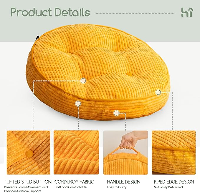 - 【MACHINE WASHABLE DESIGN AND METICULOUSLY CRAFTED】 Soft corduroy fabric provides luxurious texture. Removable cover allows machine washing, then quick reattachment for refreshed appearance. A handle is designed for you to conveniently carry the sitting cushions wherever you go. Reinforced with tufted buttons and piping stitching to resist deformation while elevating visual appeal.