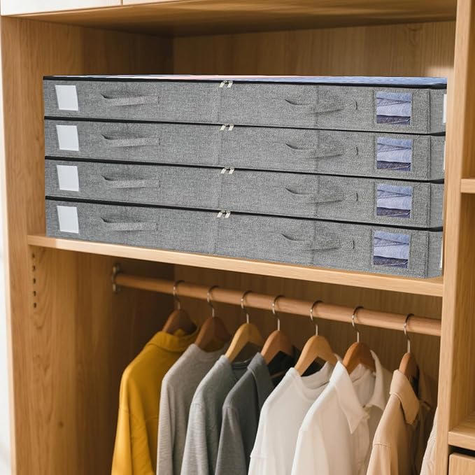 - Multi-Purpose Use: Our foldable and stackable storage bins can be used to store seasonal clothes, bedding, blankets, shoes, yarns or holiday wrapping paper and ribbons. In addition provide you with extra storage they could prevent the cat from hiding under the bed. You can also stack these bins on closet shelves, or vertically placed in the corner, to keep your home or dorm tidy