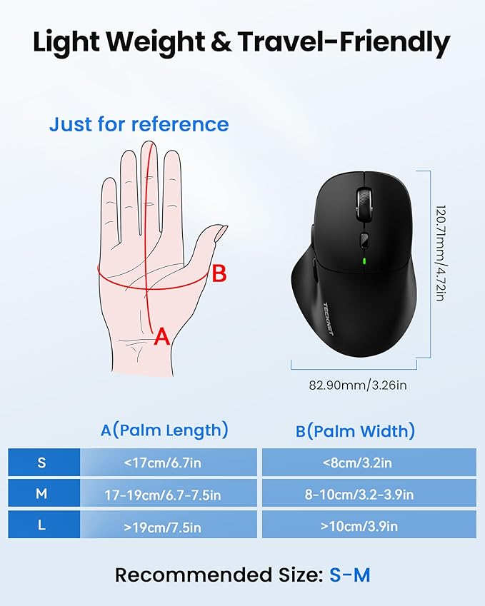 - 【Bluetooth 5.0/3.0 & 2.4G Tri-Mode Connectivity】 The TECKNET bluetooth mouse features three flexible connection options: Wireless bluetooth 5.0 & 3.0, and 2.4G USB-A plug-and-play. It's super easy to set up and use—no complicated pairing steps required! What's more, this mouse can connect to up to 3 devices simultaneously, and you can switch between them seamlessly within a 33-foot range. Boost your productivity and streamline your workflow with effortless device switching