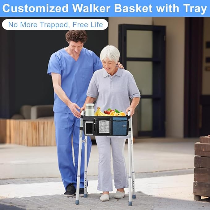 - Suitable for Different Groups:This walker basket is very useful for all kinds of elderly people or people with limited mobility. Because they want to carry things with them on the move, but can't always free up their hands. At this time, a walker organizer is very necessary for them.