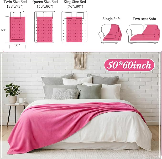 Kinlop Fleece Blanket Bulk 60 x 50 Inch Soft Lightweight Fleece Cozy Blanket Warm Throw Plush Pet Throw for Bed Couch Sofa Home Office Wedding Gifts Travel Camping(Azalea Pink,40 Packs)