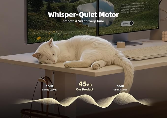 - Smart Electric Lift: Offering a height range from 28.3 to 46.5 inches, this electric desk adapts easily to working, studying, or meetings. The quiet motor operates under 45dB, keeping your space calm and focused.