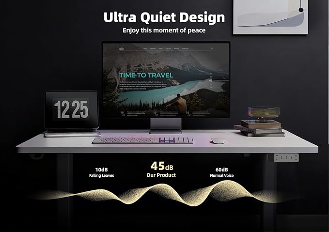 - Smart Electric Lift:With a height range from 28.3" to 46.5", this electric desk adapts easily to work, study, or meeting environments. The low-noise motor stays under 45dB, helping you maintain focus without disruption.
