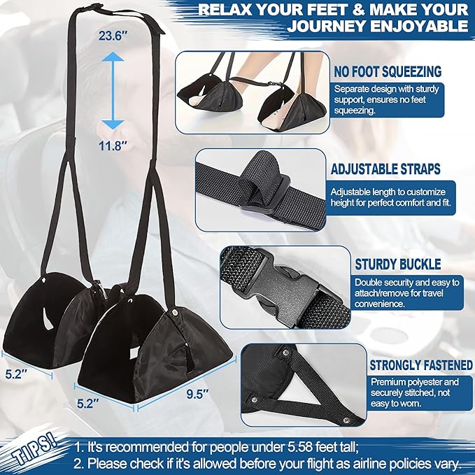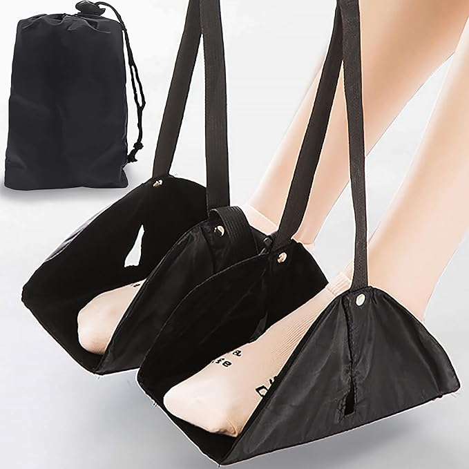 - Travel Essentials For Enjoyable Journey - This foot hammock for plane travel is essential for long flights to effectively relieve the pressure on your feet and lower back. Helping you improve blood circulation in your legs by elevating your feet to say goodbye to leg fatigue or swelling!