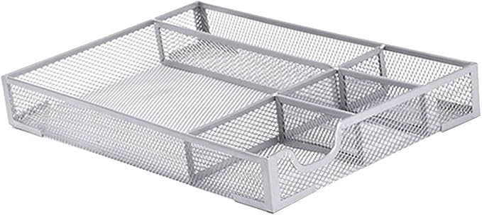 - Simple and Elegant Aesthetic: Featuring a sleek silver wire mesh finish, this desk drawer organizer tray complements any home or office decor. Its modern, minimalist design enhances your workspace's organization while maintaining a stylish appearance that seamlessly blends in.