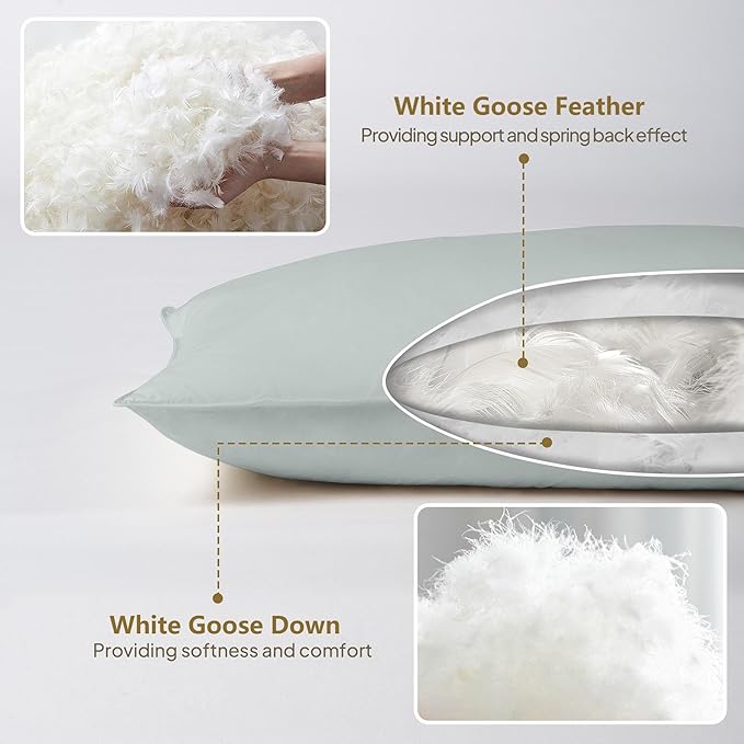 - Unmatched Premium Fill: Generously filled with a premium blend, this body pillow combines the cloud-like softness of 90% white goose down & feathers with the 10% resilient support of down alternative polyester. This optimal balance ensures exceptional loft that cradles you, without feeling overly firm