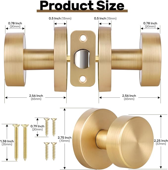 - High-quality materials: Interior door knobs are crafted from premium zinc alloy for exceptional durability. The brushed brass passage knob features a satin brass finish, ensuring long-lasting performance.