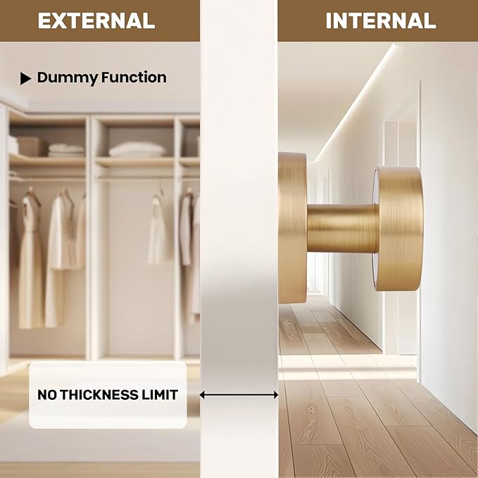 - High-quality materials: Interior dummy door knobs are crafted from premium zinc alloy for exceptional durability. The brushed brass dummy door knob features a satin brass finish, ensuring long-lasting performance.