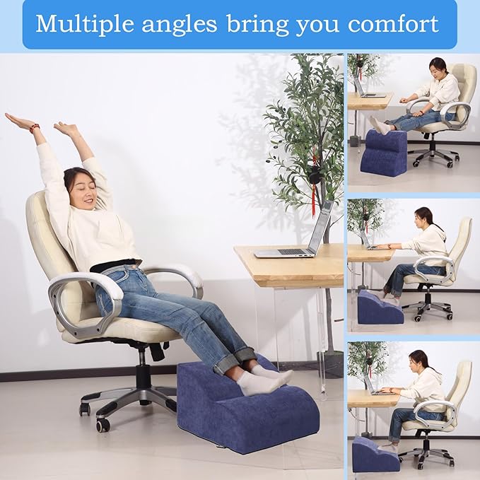 Foot Rest for Under Desk at Work.Multifunctional 3-Tier Foot Stool,with Washable Footrest.for Under Desk,Office Chair Gaming Chair & Sofa,Leg Elevation Pillow,Supports Posture (Dark Blue)