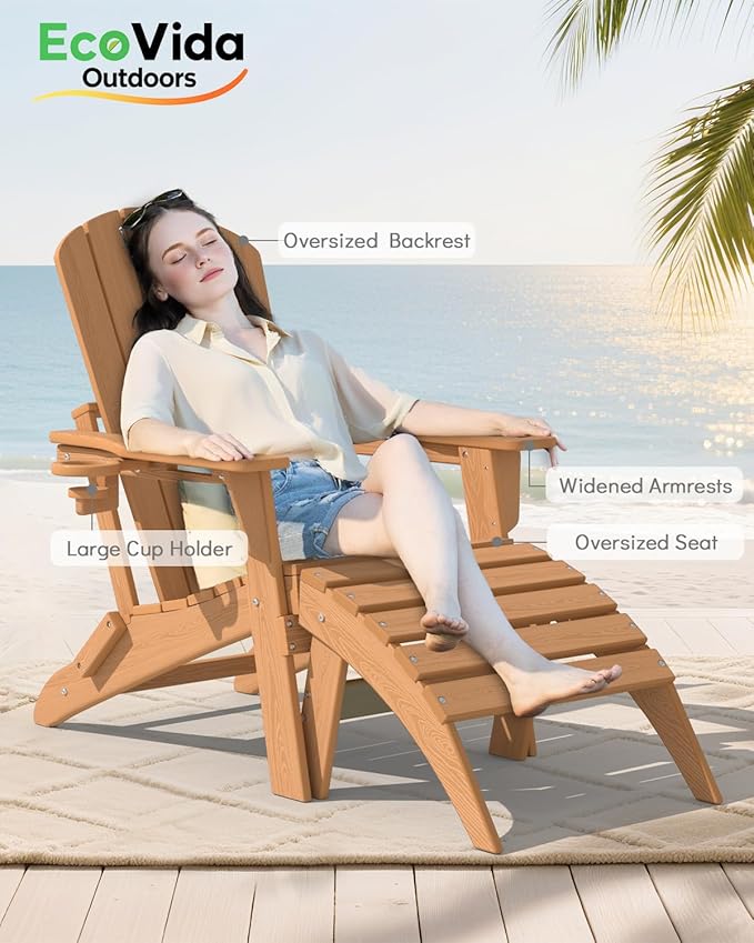 - 【Fits More People – 38-Inch Tall Back Design】 The Ecovidaoutdooors Adirondack Folding Chair features a 38-inch high back, effectively solving common issues such as insufficient head and neck support and back pain caused by long sitting in traditional Adirondack chairs. Designed for ergonomic comfort, it fits perfectly with the American body type, providing comfortable, supportive, pressure-relieving support.